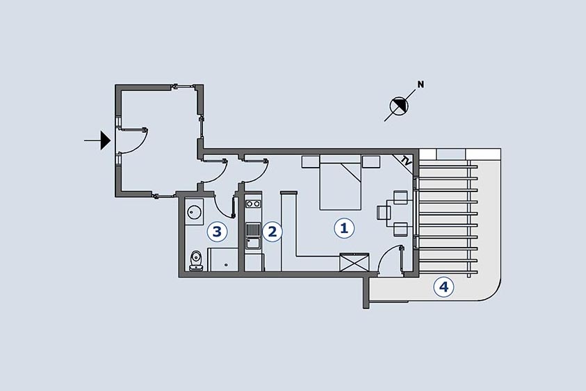 Dieses urgemütliche Studio-Apartment ist ideal für Singles oder ganz frisch Verliebte. La Baja ist die kleinste Wohneinheit von Lotus del Mar.